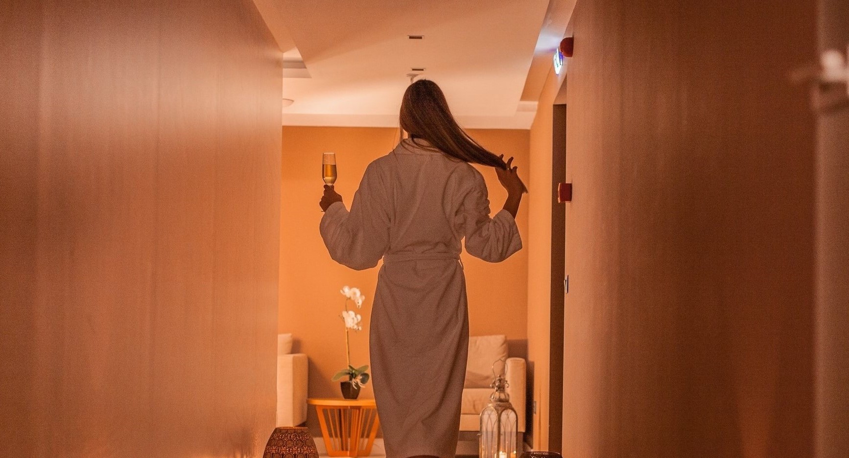 A shared spa experience for two in our private VIP Suite — including full-body massages, a jacuzzi session, Finnish sauna, steam room, a fruit plate, and smoothies.
